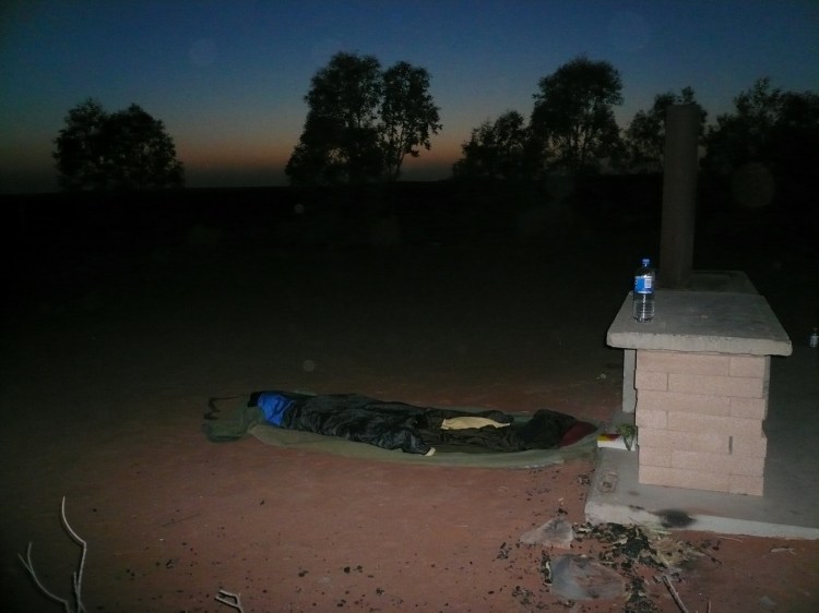 And here’s the campsite at William Creek. That’s where I slept, in a “swag”, which is just a sleeping bag rolled up in a waterproof, canvas, zippered sack. You put it down anywhere you want and it’s what I slept in for most of the seven nights of the trek. My rule was that I couldn’t go to sleep until I saw three shooting stars. All the bars I drank at the bar made it impossible to keep to the rule here, though.