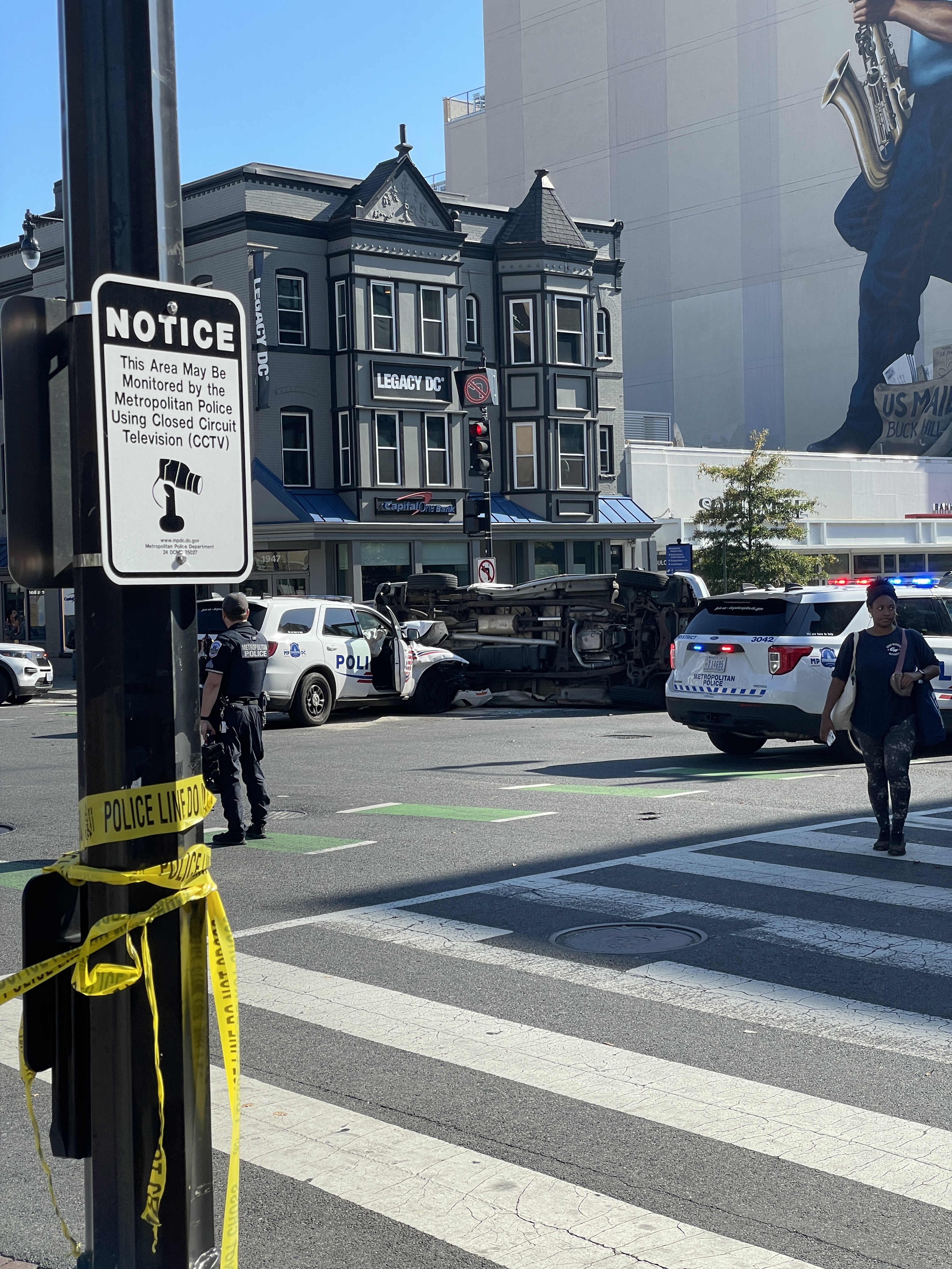 The intersection of 14th & U, right next to my apartment, continues its curse of havoc & violence. Saw this crash today on my walk to the grocery store. More details about it here.