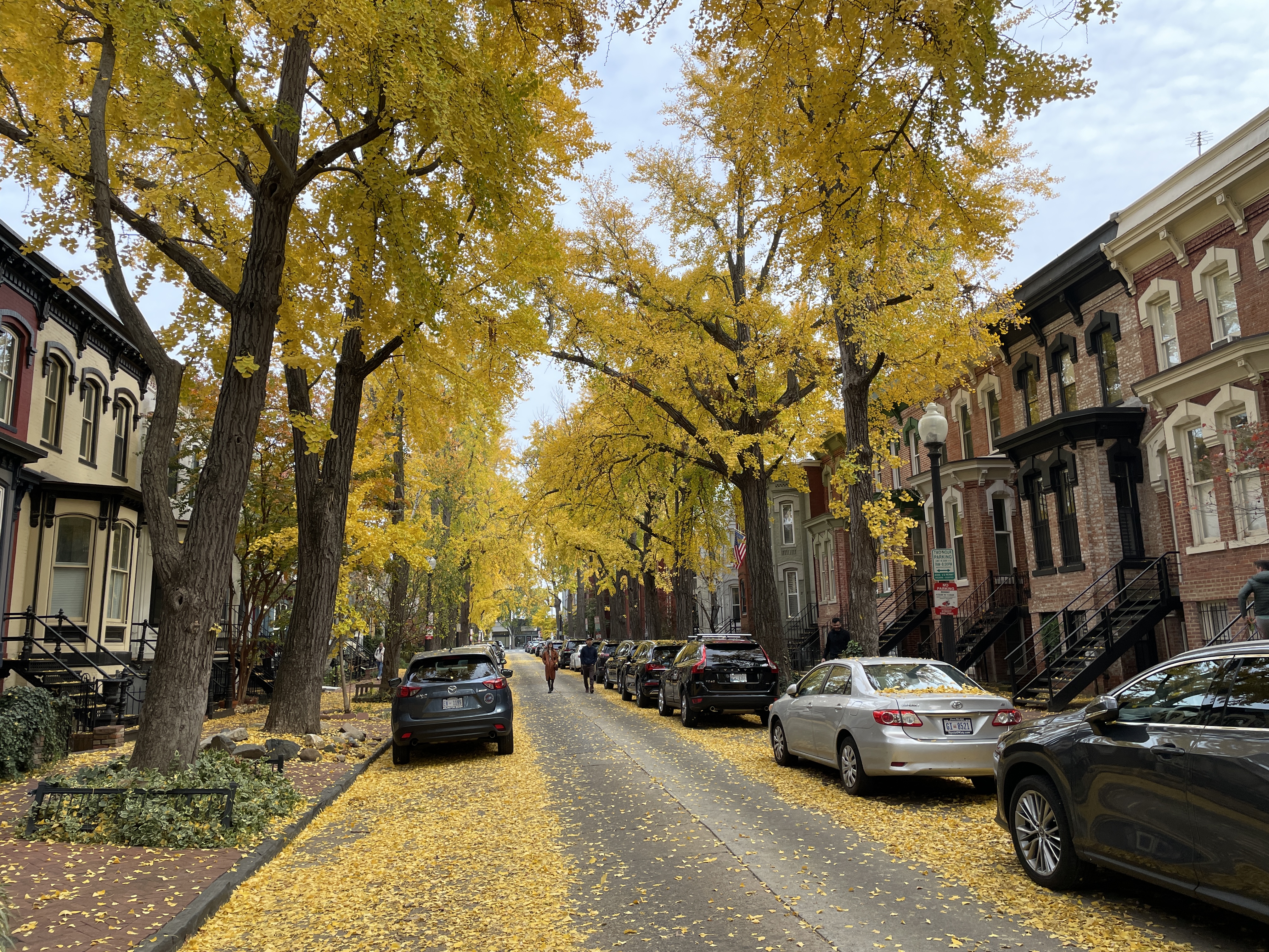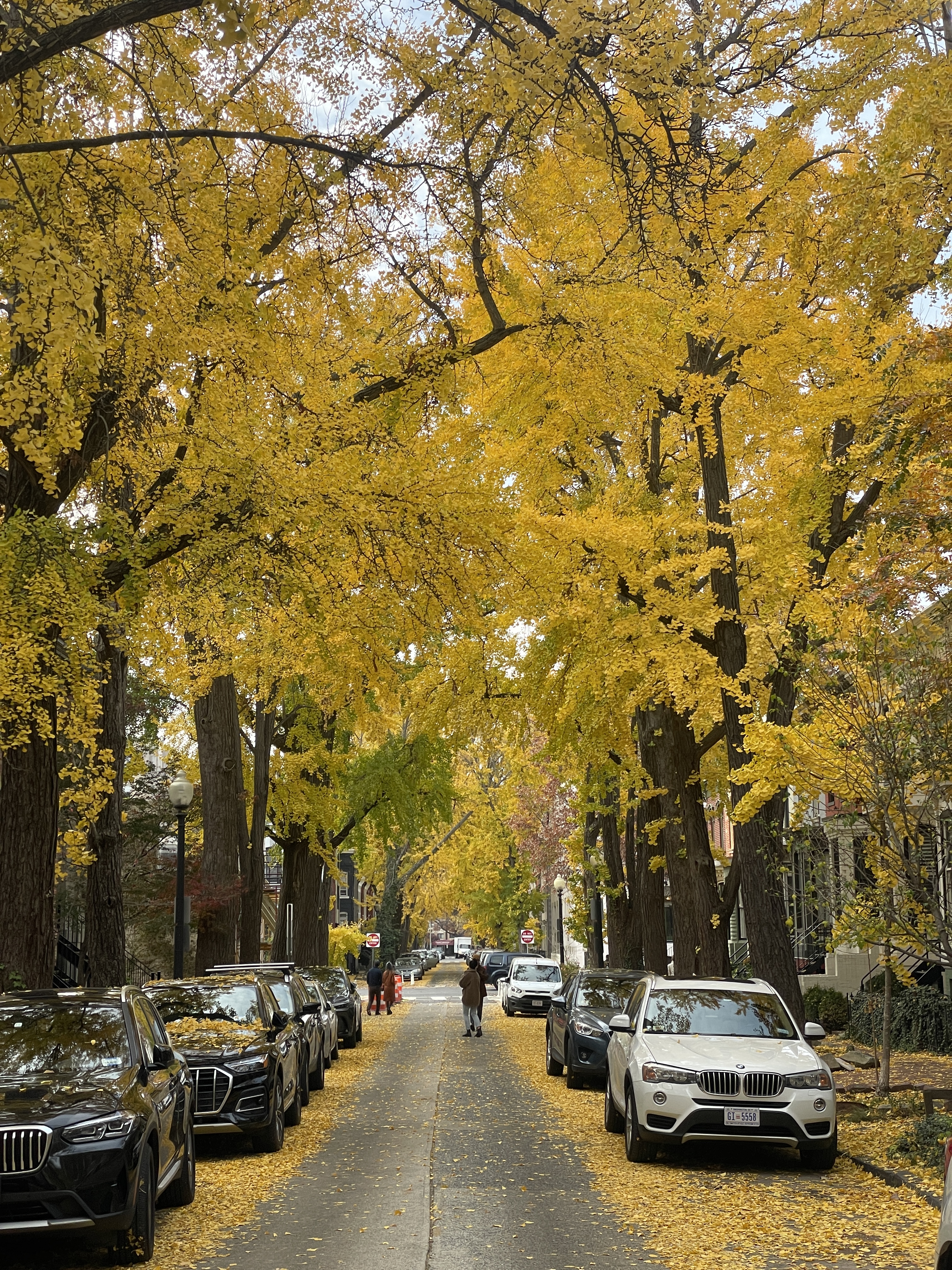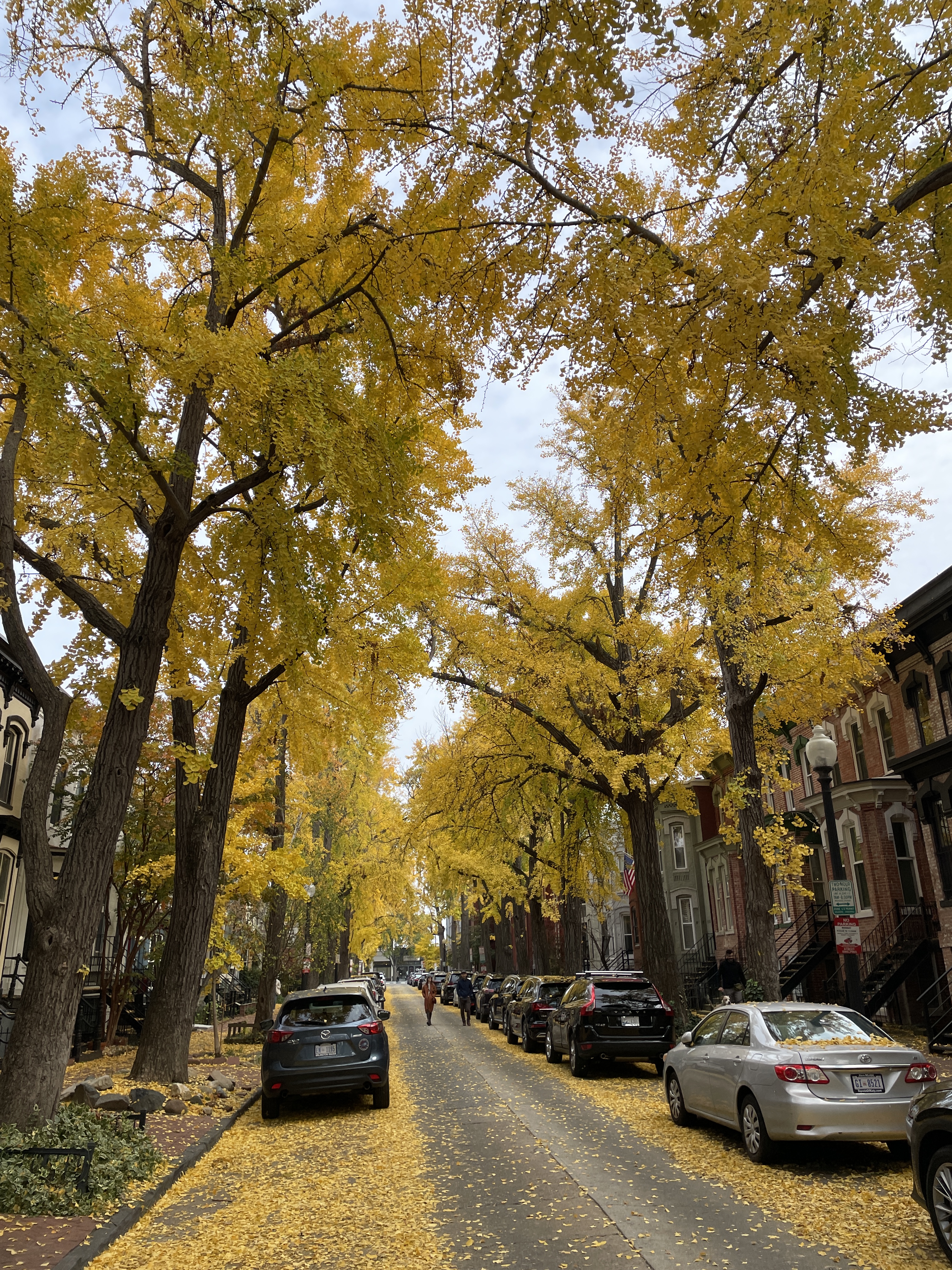 It’s that magical time of year when the leaves from the Ginkgos “snow” down the sides-streets of DC