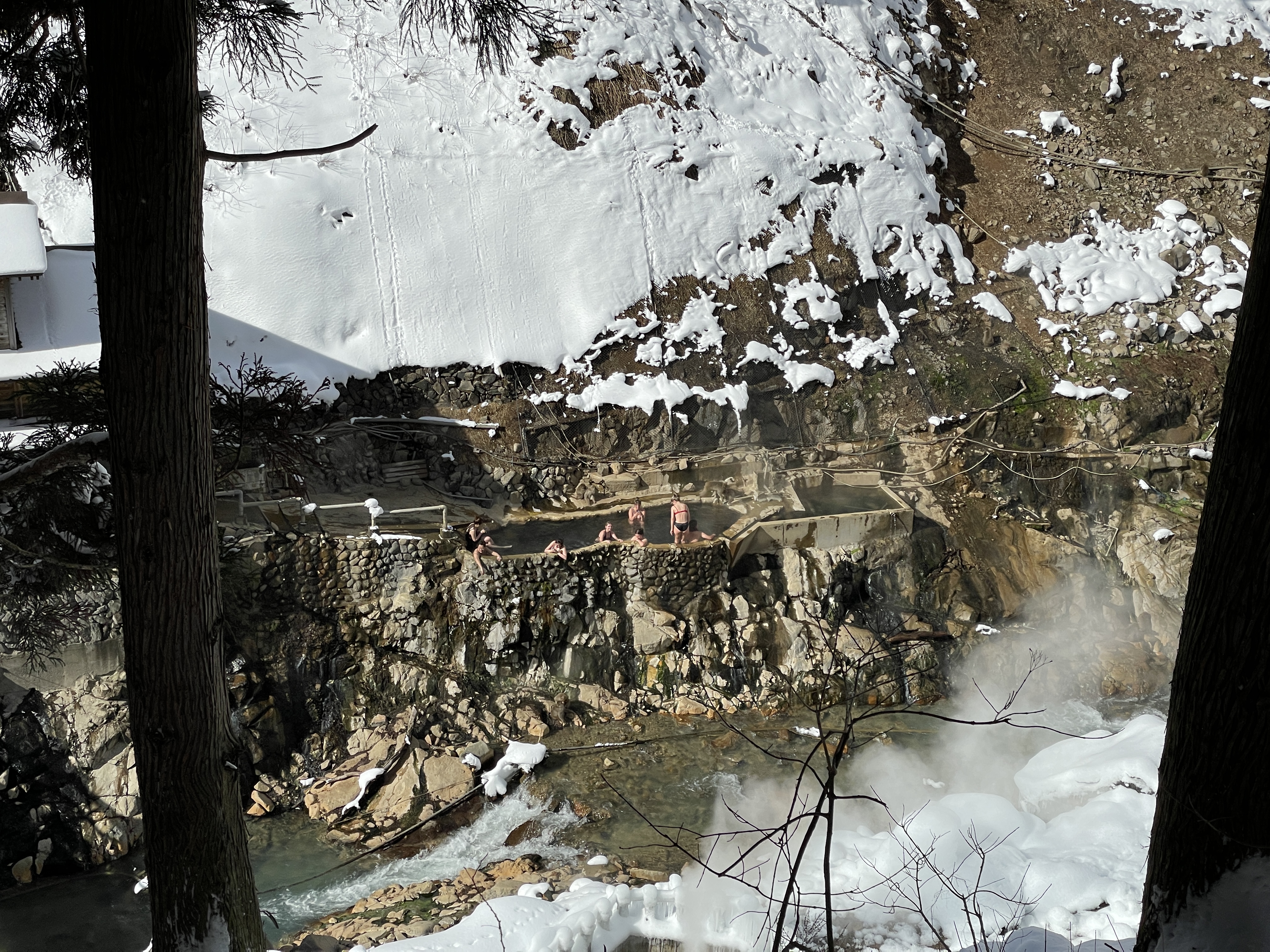 Before they were famous snow monkeys, they were just monkeys living in the forest. Locals traveled into the forest to enjoy the natural hot springs there. At one Onsen, people sitting in one of the man-made outdoor pools would watch the monkeys in the forest, and entice them to come closer with food. Over time, this “closer” became “in”, and thus the bathing snow monkeys. The monkeys are wild and started to become aggressive, so the government built them their own pool, which is the one you see in the pics above.