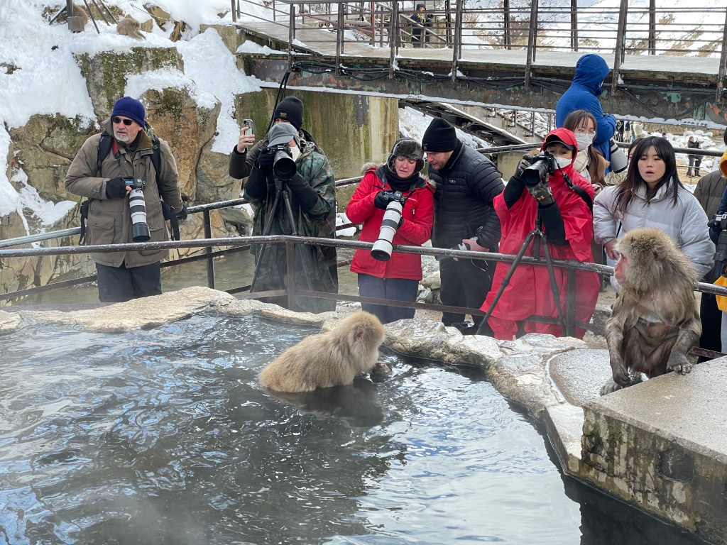 The monkeys are wild, but very used to people, so you can get right up next to them. Because it’s Japan, everybody is very well behaved, and nobody tried to mess with or feed the monkeys, and they don’t beg for food. Really, it’s the people begging, for that one perfect shot.