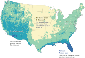 I think weather forecasting has come so far, and am amazed how accurate they mostly are, sometimes even a week out. I still learned a lot from this article, though, and was surprised that the middle of the country is the hardest to predict (I would have thought it’d be the East Coast)