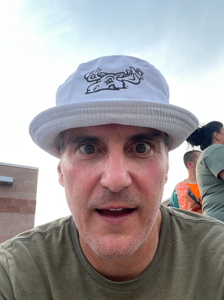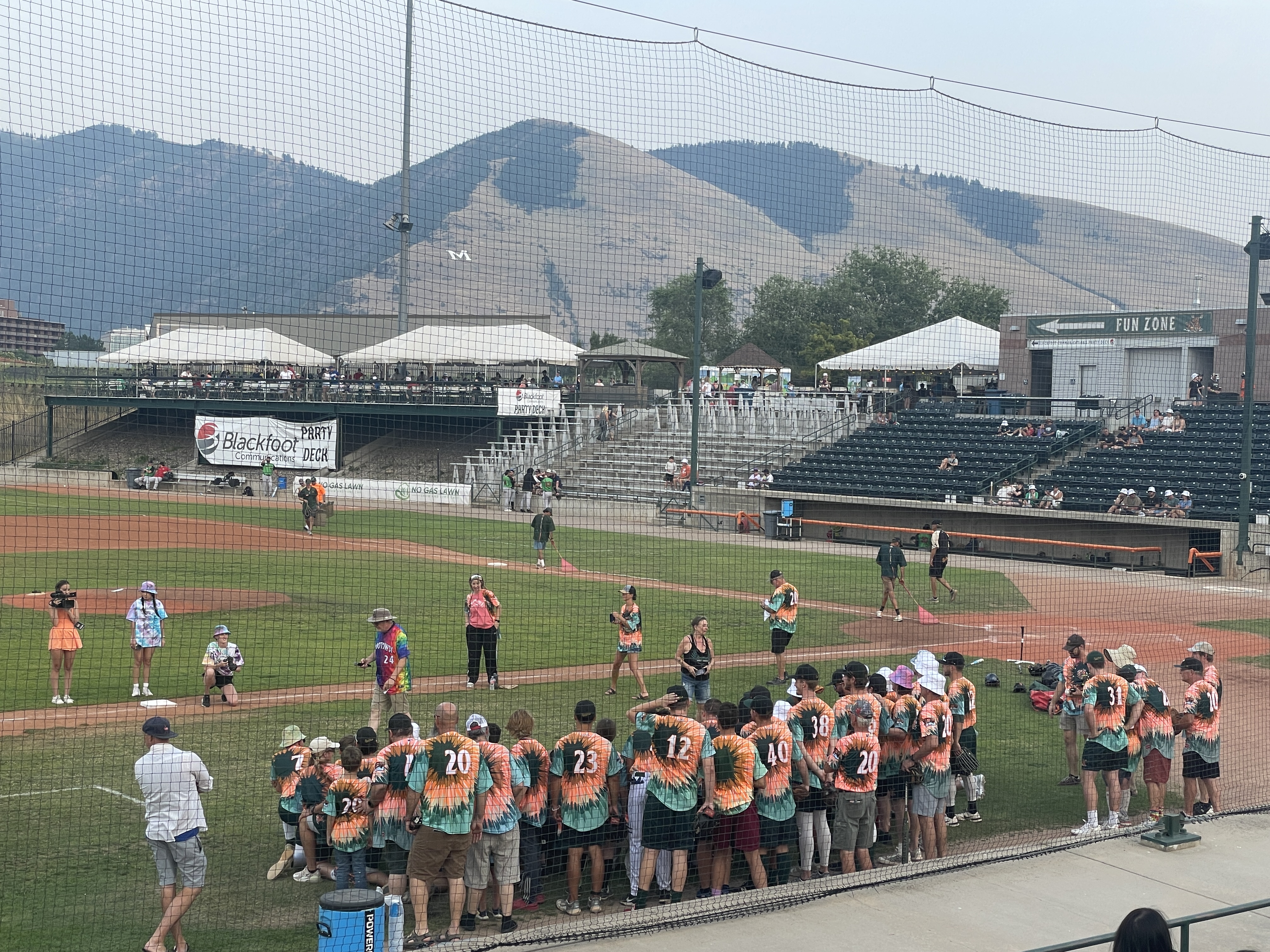 It was tie-dye night, so all the players wore tie-dyed shirts, and they gave out free bucket hats and provided lots of tables for you to tie-dye them:
