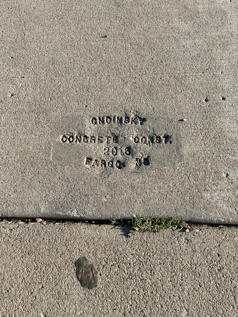 I noticed these sidewalk stamps everywhere in Fargo (and, Bismarck), and the companies changed from section to section. Is this something that’s in all sidewalks and I never noticed before?