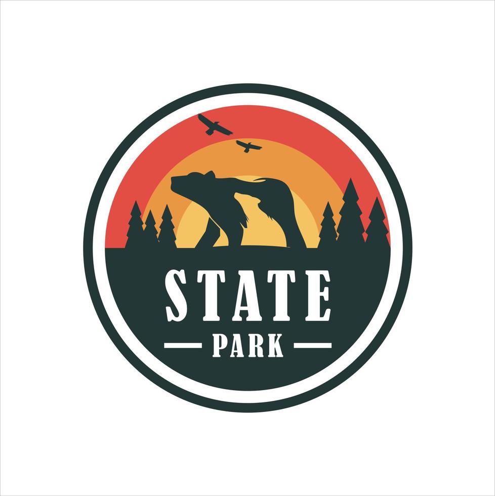 So, the imagery in the center is the issue. One thing I thought might work is to mimic the feeling of vintage Nation Park posters, and of modern patches & badges that have a simple, outdoorsy, western USA aesthetic, with warm colors & silhouettes: